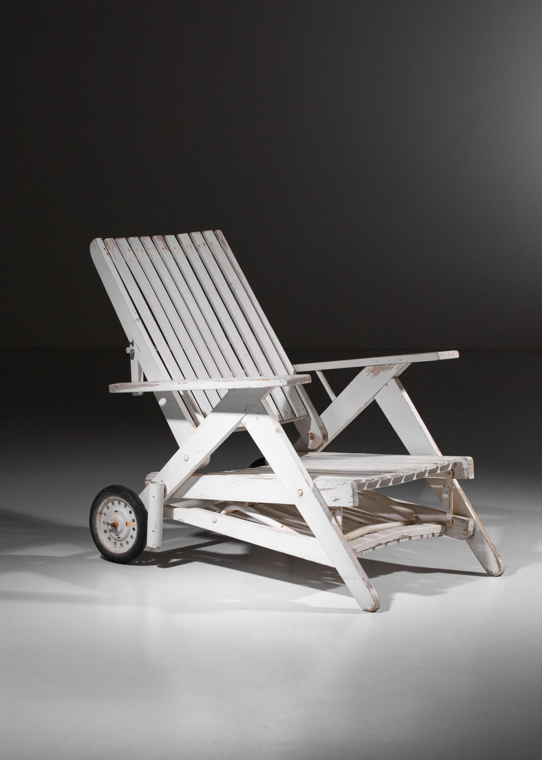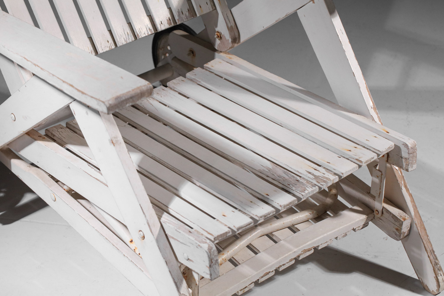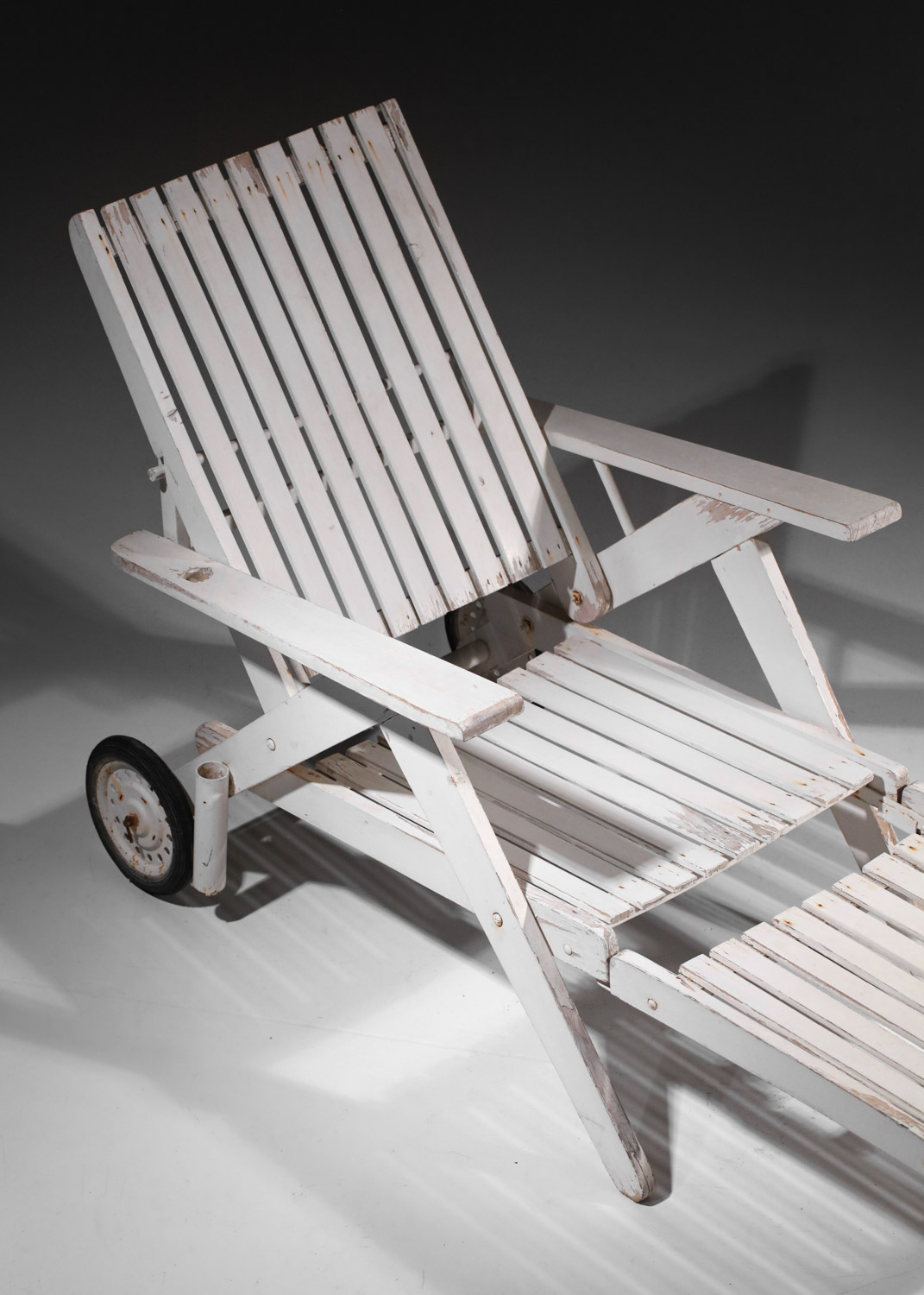 transat bain de soleil en bois laqué années 50 design vintage mobilier de jardin bois massif laqué blanc