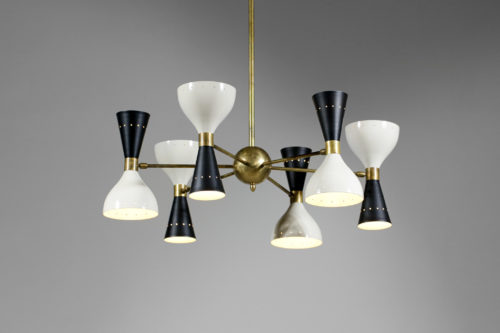 Large contemporary Italian chandelier in brass and white opaline. 10 inner and 10 outer globes. Some traces of natural oxidation of the brass. Patina, height and diameter at your choice and on order.