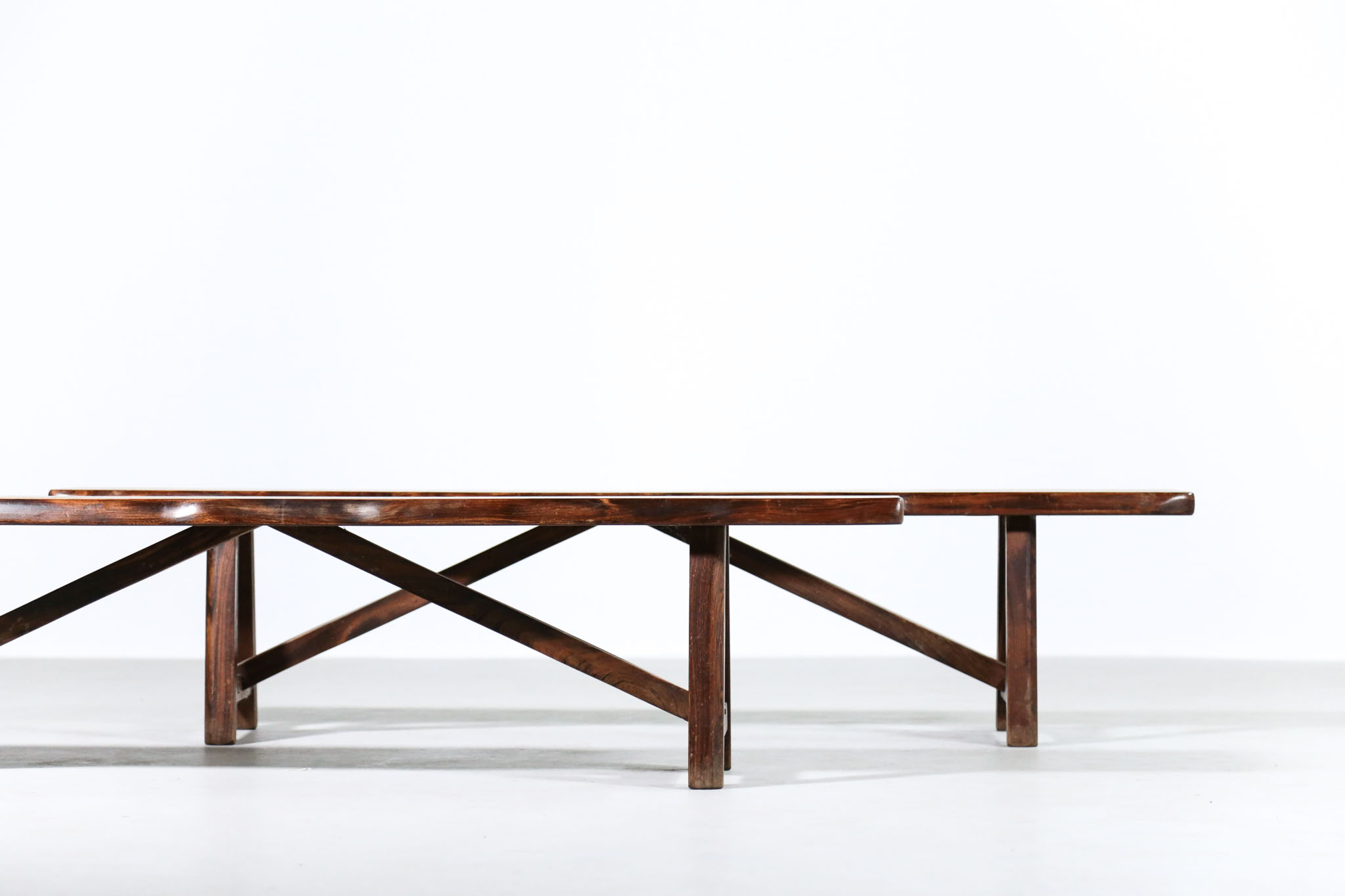 Paire de banc du designer finlandais Olavi Hanninen. Structure en orme massif.