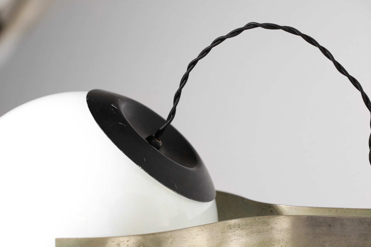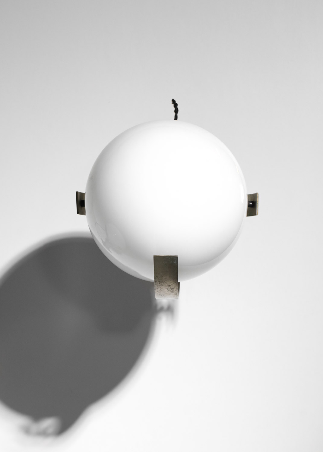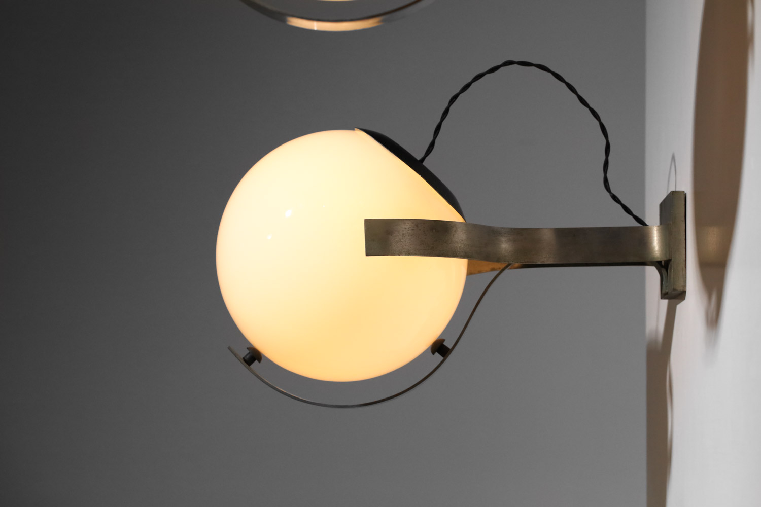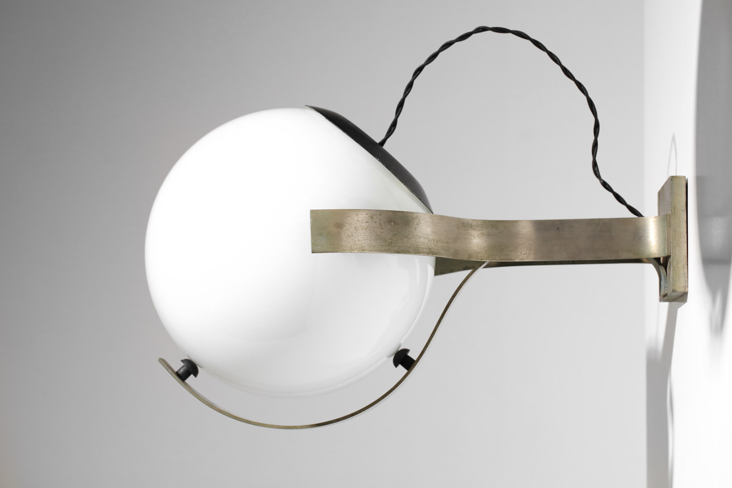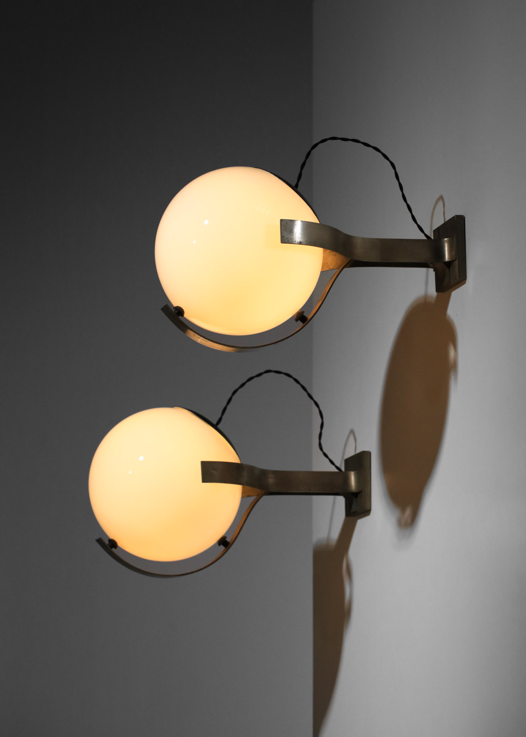 Set of three large Italian wall sconces from the 1960s. Nickel-plated brass frames and white opaline glass shades. Very good vintage condition, with some signs of age and use on the brass (see photos). We recommend one E27 LED bulb per sconce.