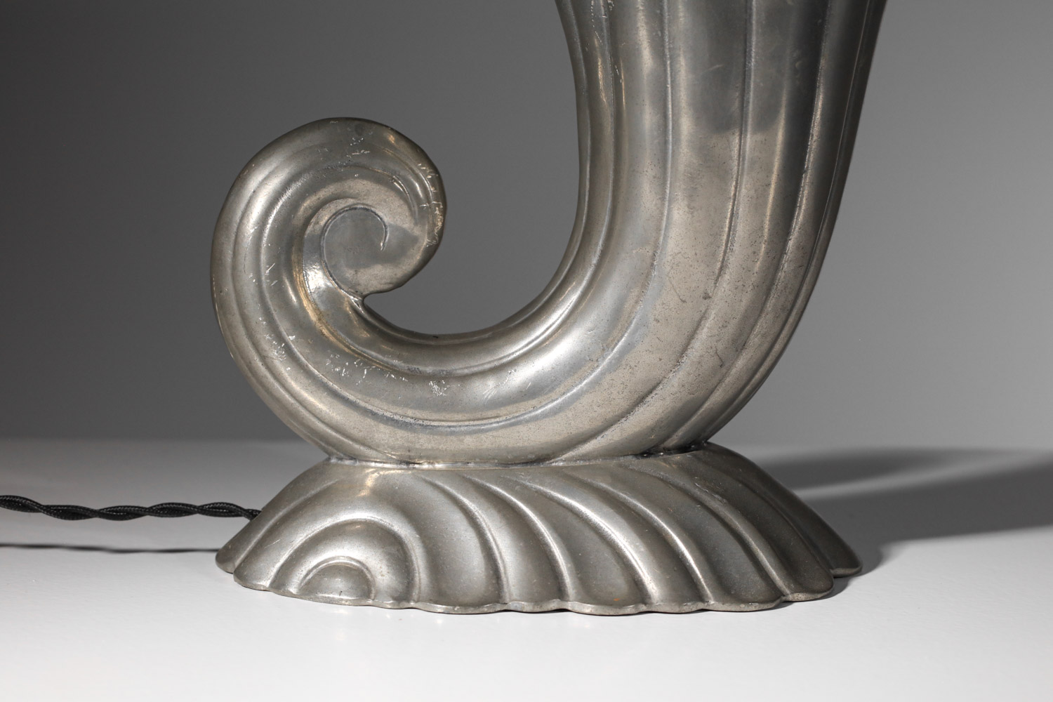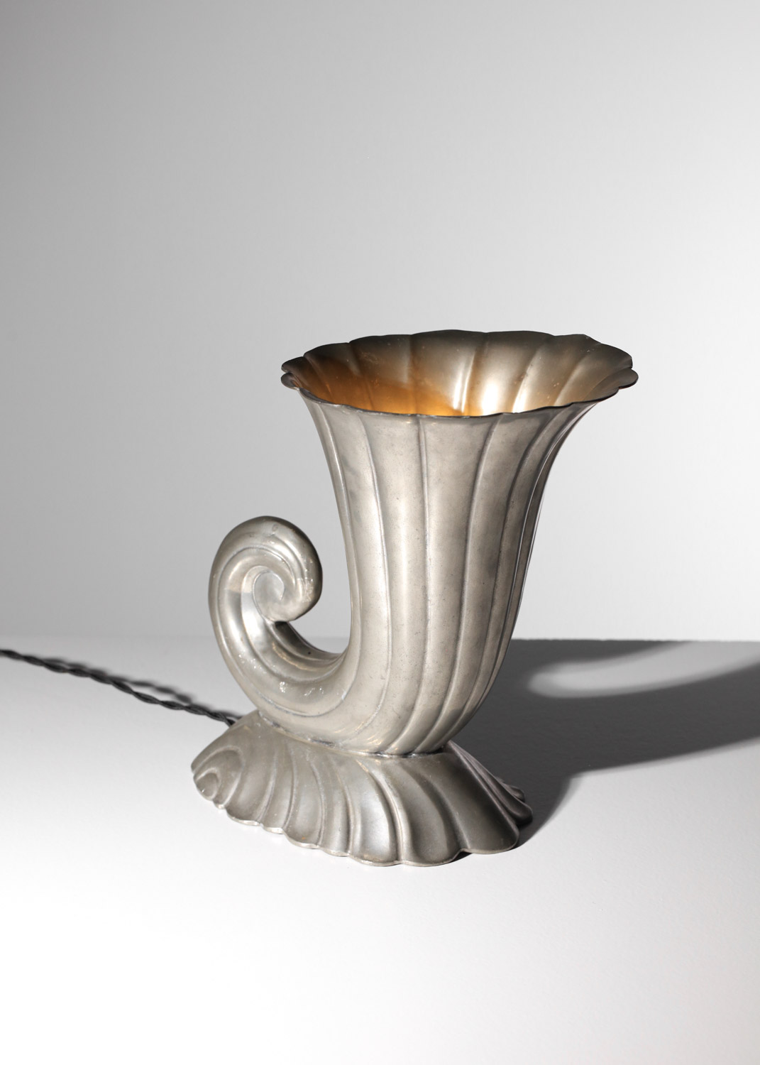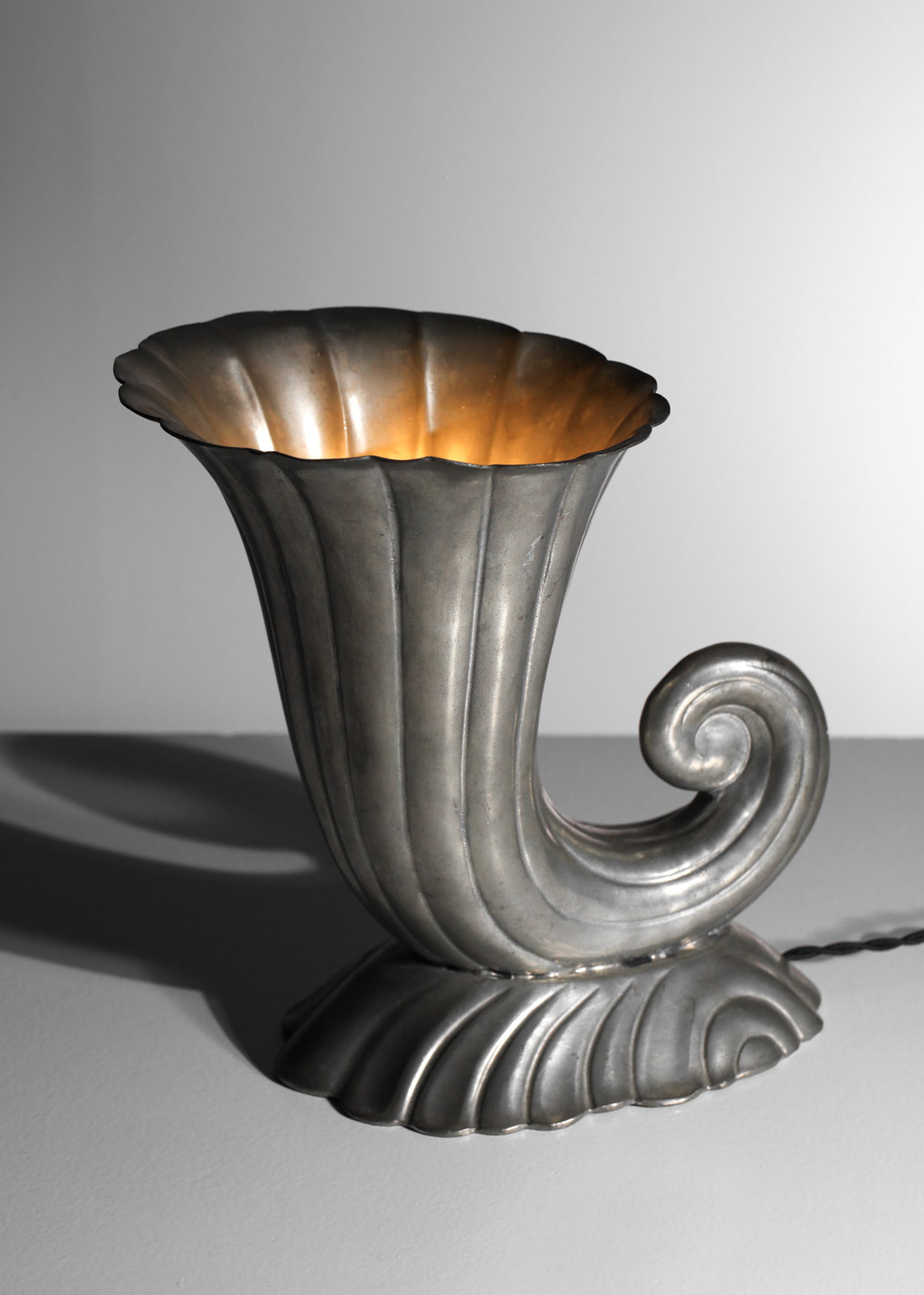 corne d’abondance en fonte d’aluminium des années 70 montée en lampe design vintage art déco