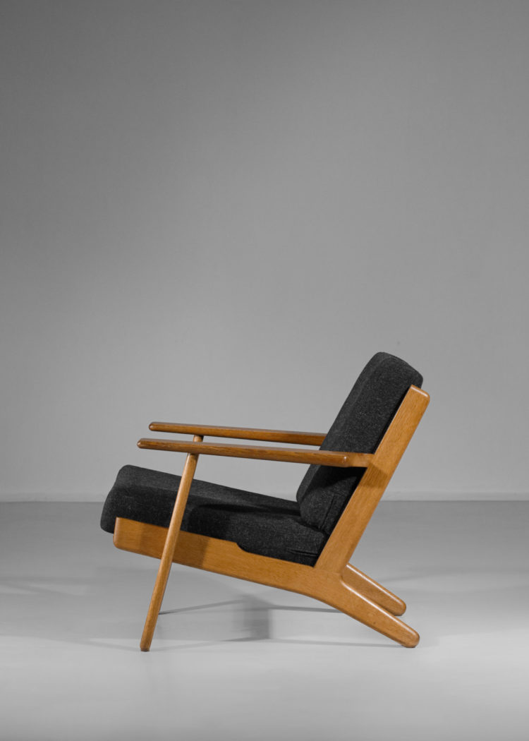 Fauteuil de repos scandinave GE 290 du célèbre Designer Hans Werner de 1953 édité par Getama. Structure en chêne massif, il se distingue par ses pieds en oblique et son dossier légèrement incliné vers l’arrière pour une assise parfaite. Coussins d’origine re-tapissés. Excellent état vintage (cf photos).