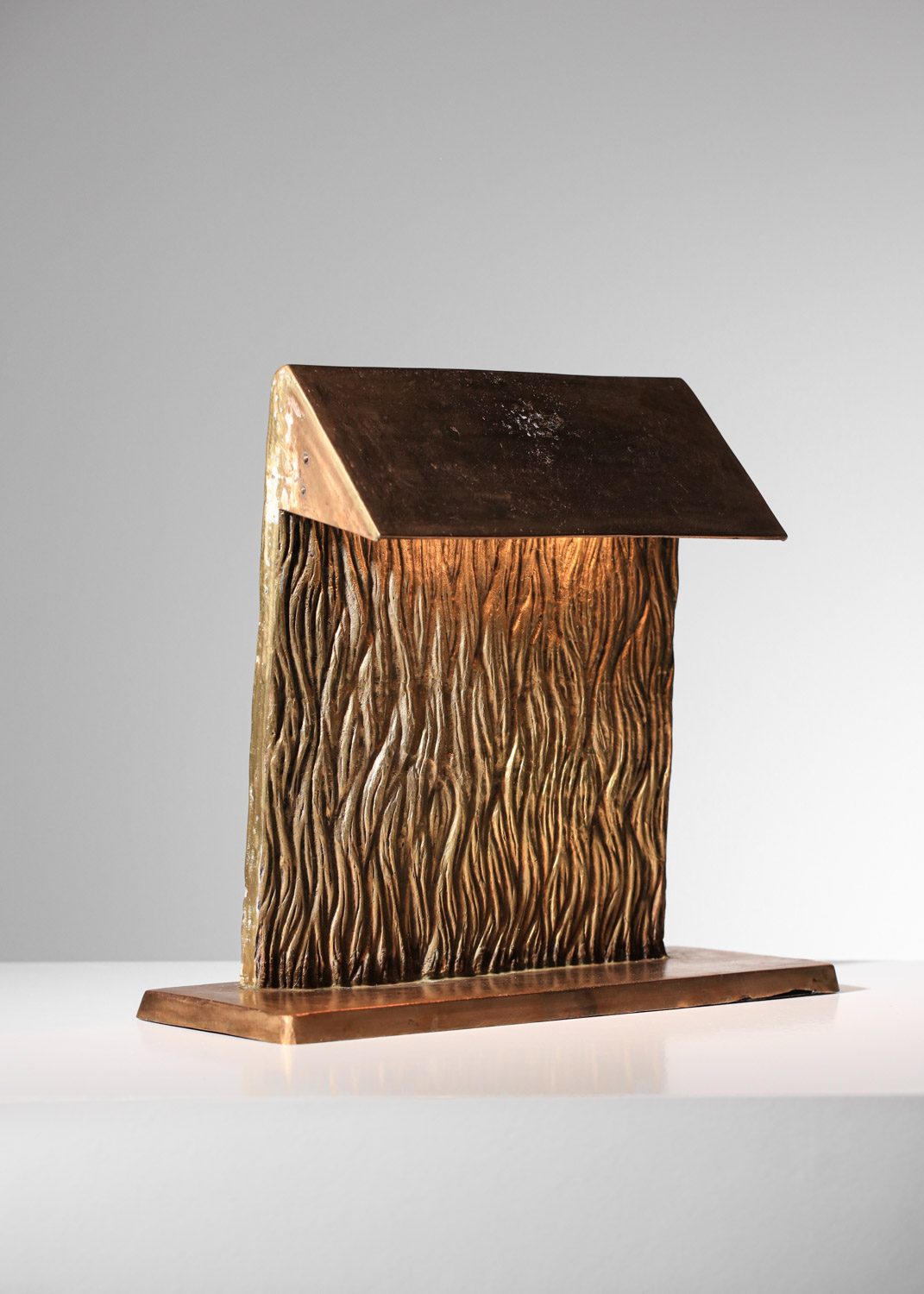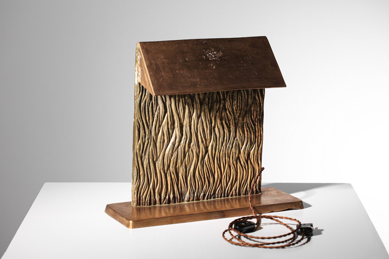 Grande lampe de table française des années 40 entièrement en bronze massif dorée (lourde). Très bel état vintage avec une très belle patine du temps sur l’ensemble de la lampe (voir photos). Nous recommandons deux ampoules LED type E14.