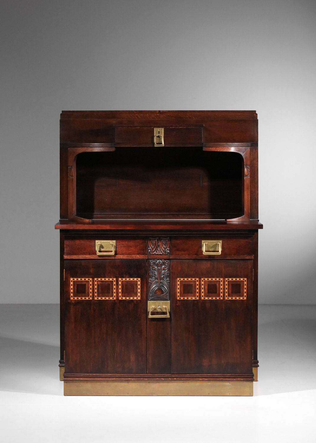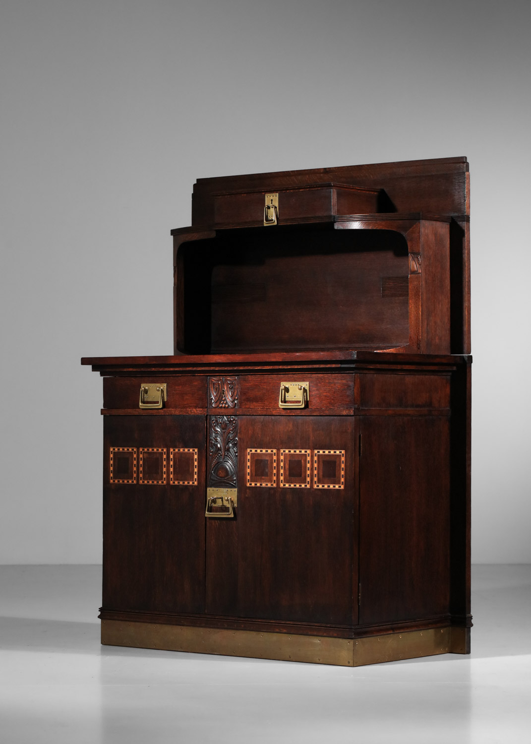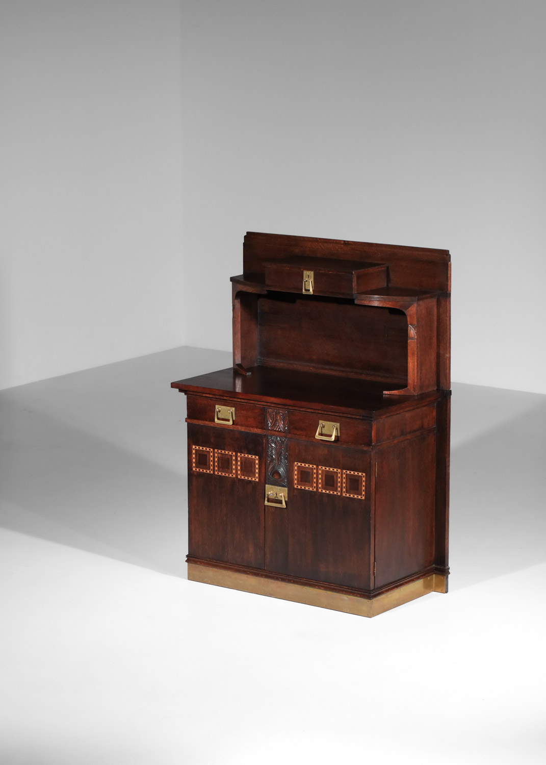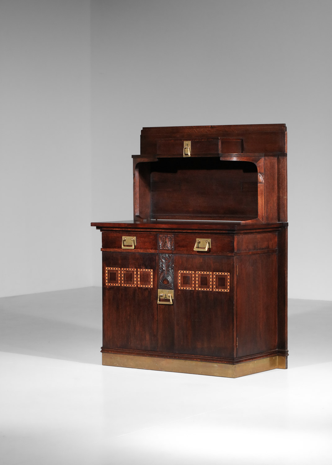 meuble  jugendstil secession viennoise en chêne sculpté style koloman moser ou josef maria olbrich  design vintage bois massif décoré J388 art and craft art nouveau