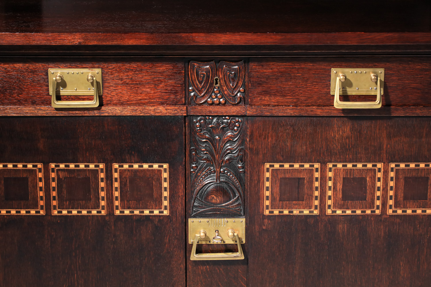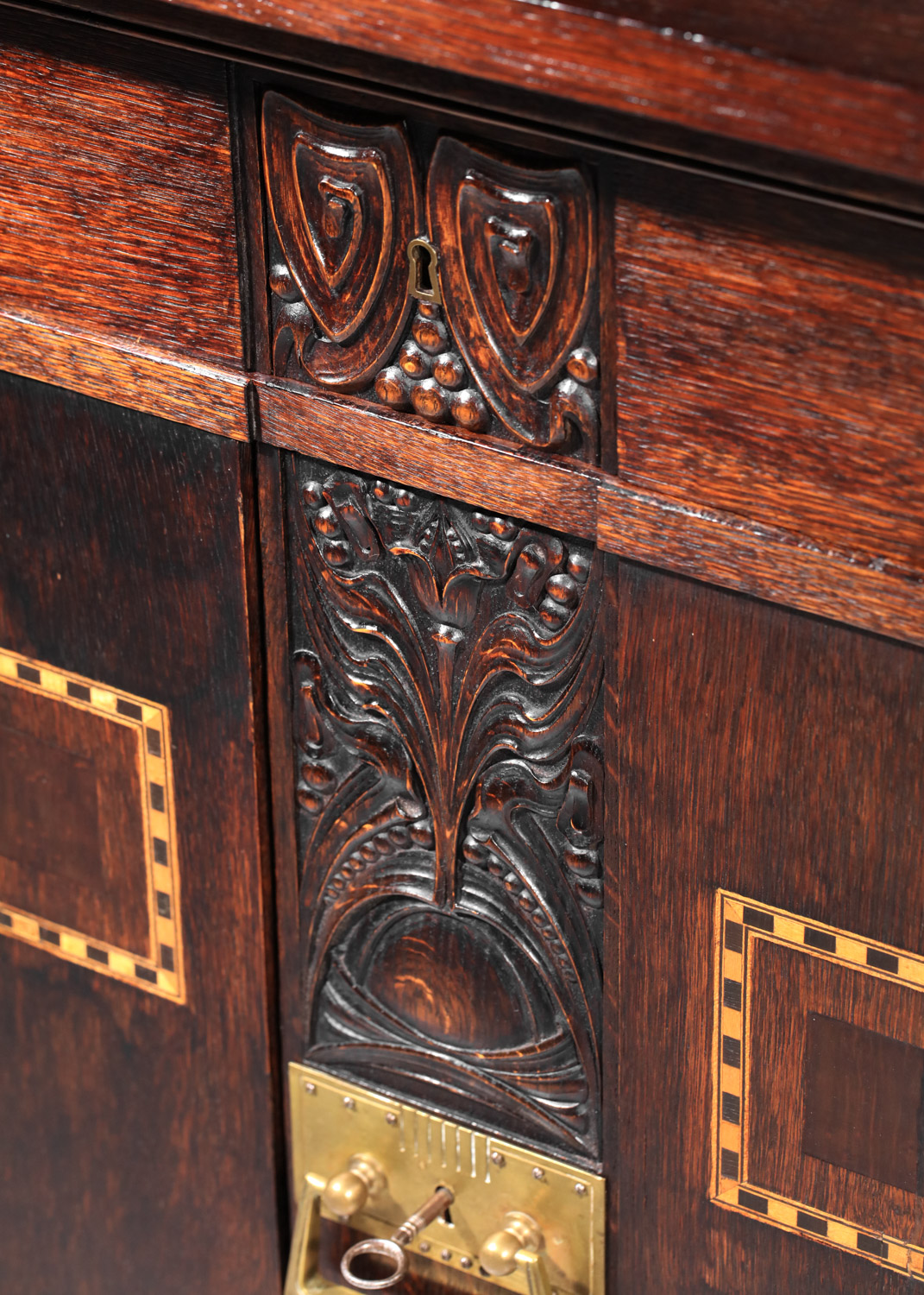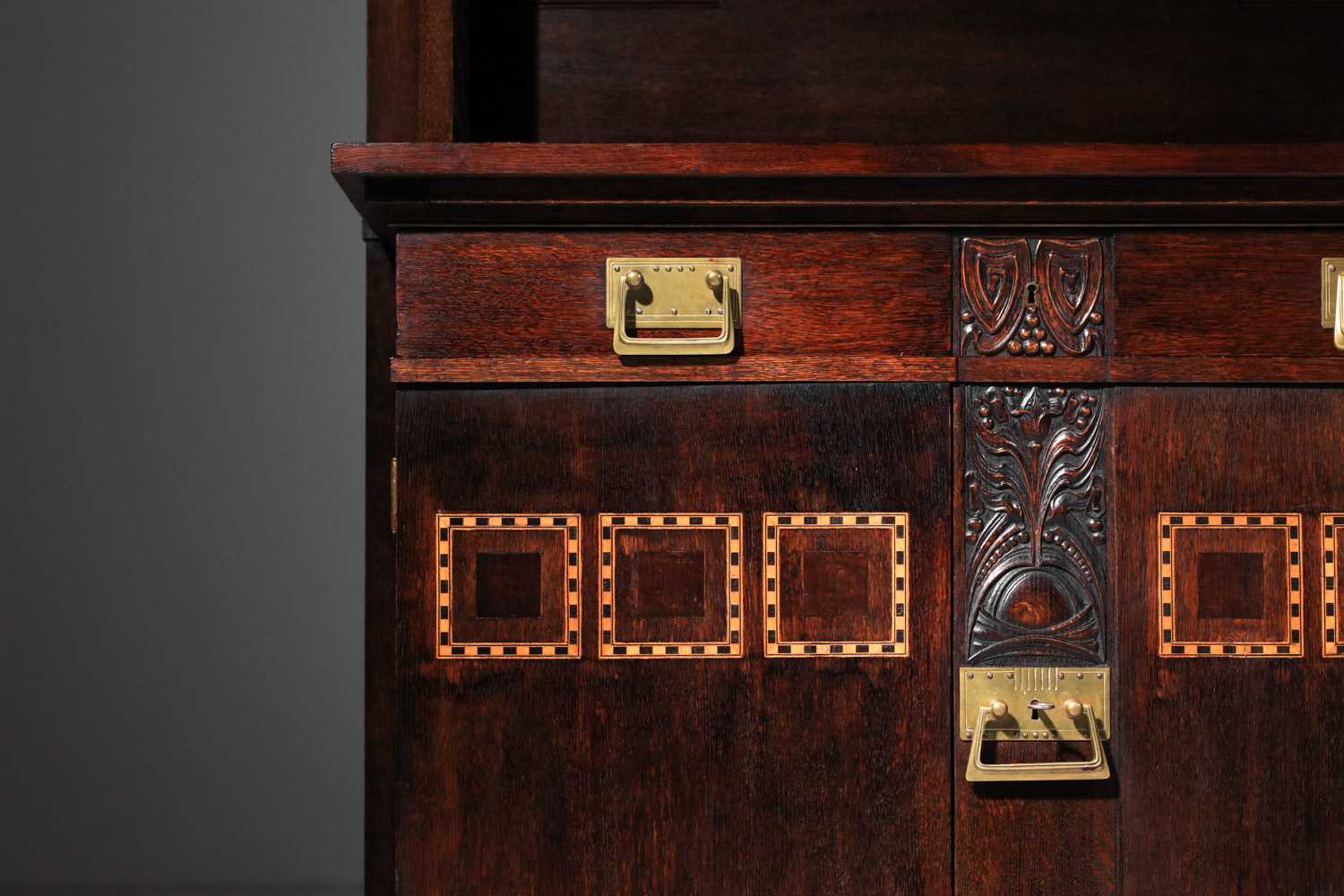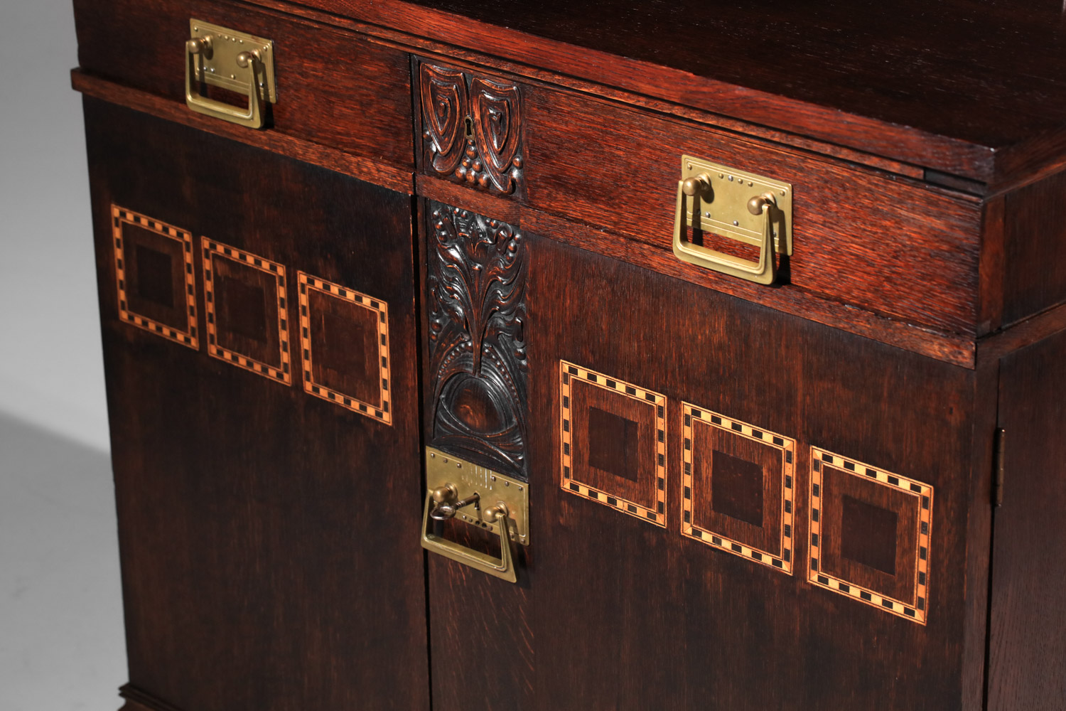 meuble  jugendstil secession viennoise en chêne sculpté style koloman moser ou josef maria olbrich  design vintage bois massif décoré J388 art and craft art nouveau