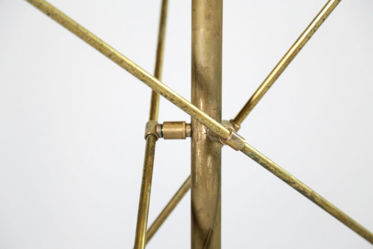 Lampadaire italien moderne trois balanciers, travail contemporain dans l’esprit des lampadaires du Designer italien Angelo Lelli. Abat-jour orientables. Structure en laiton massif, socle en marbre et diffuseurs en acier laqué noir.