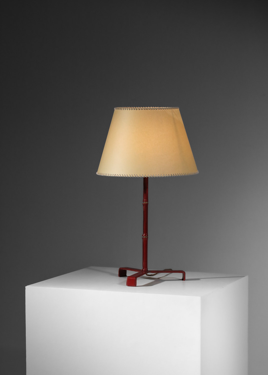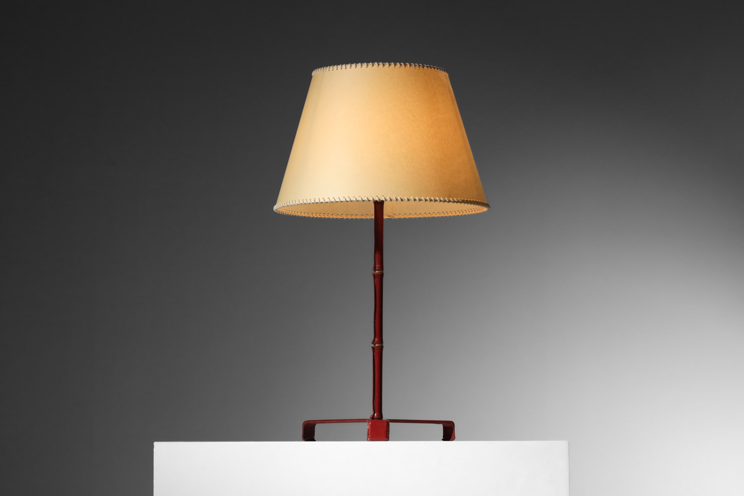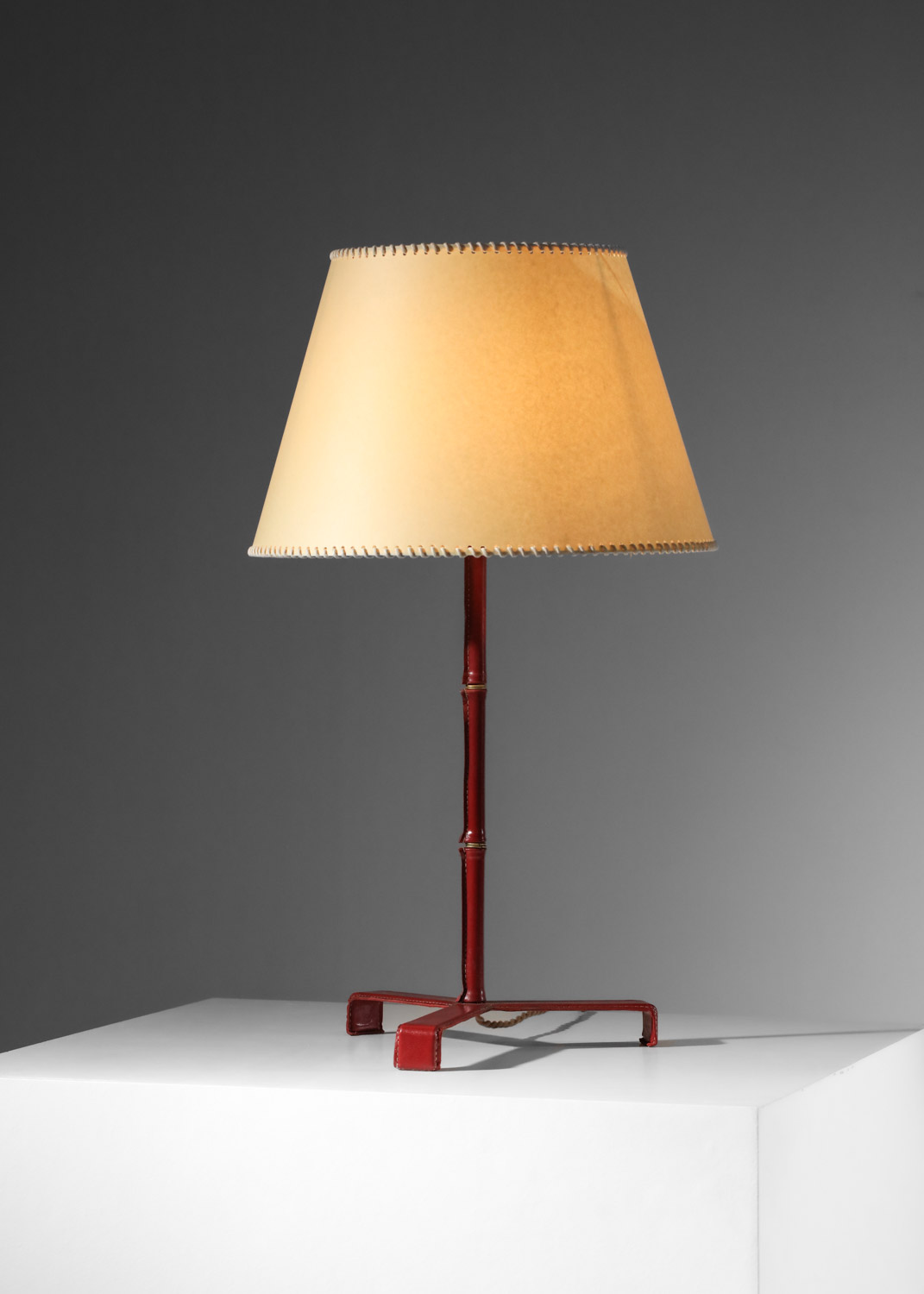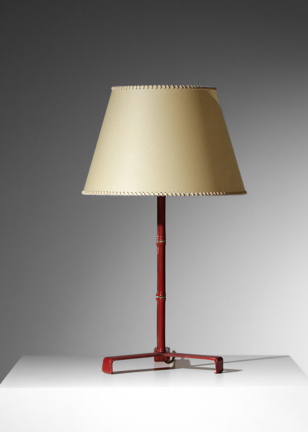 lampe de table gainée de cuir rouge attr à jacques adnet années 1940 – J374