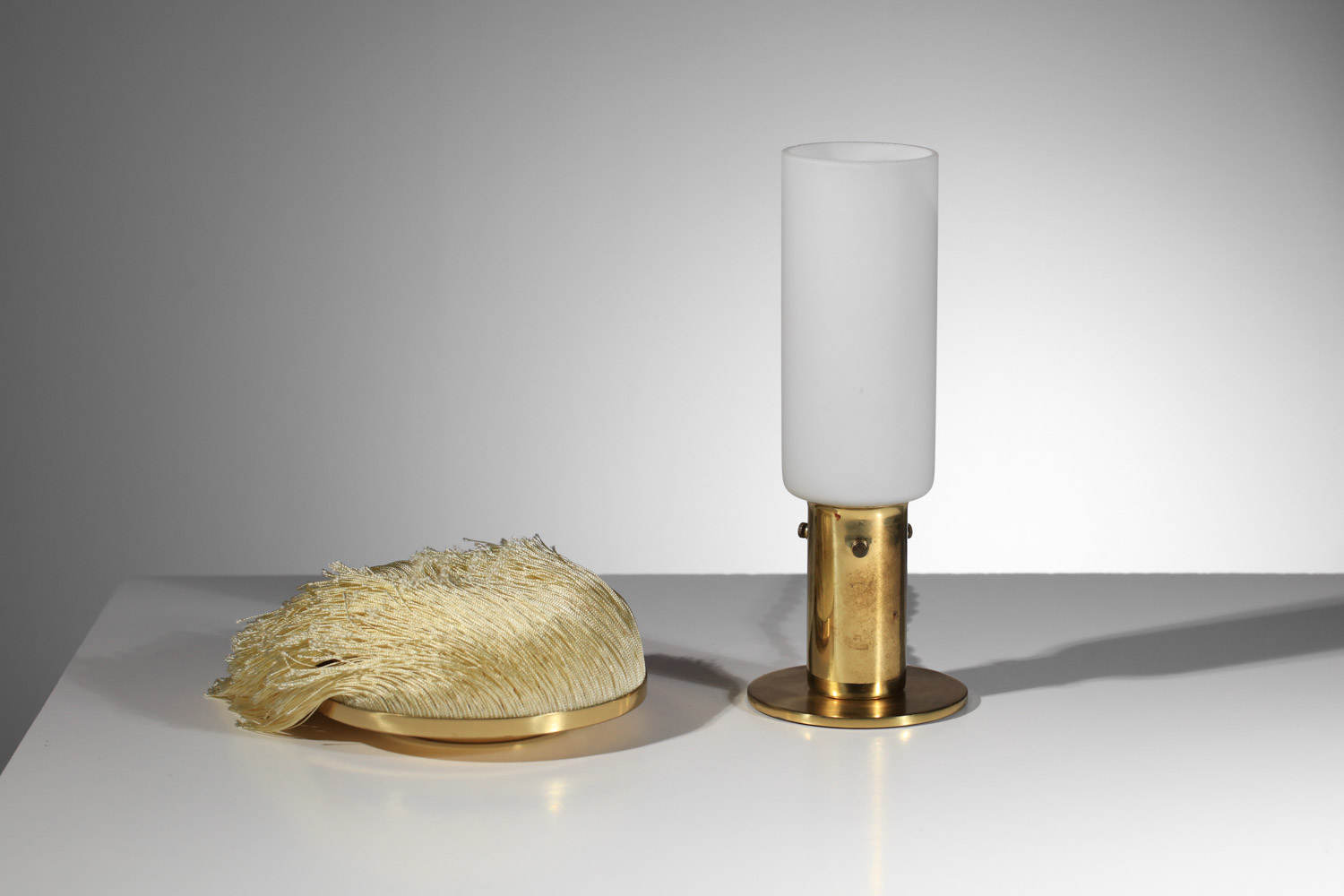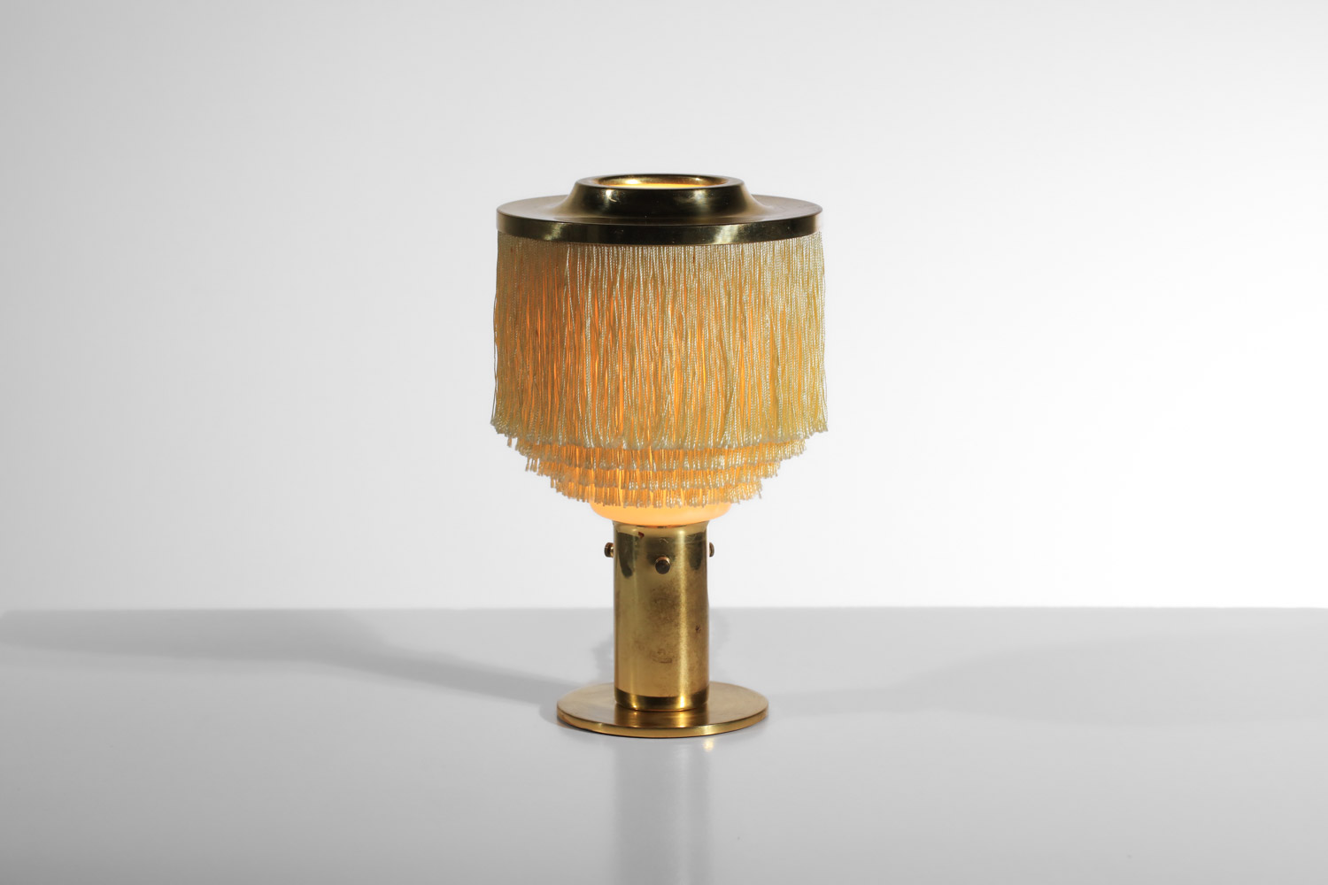 lampe de table suédoise hans agne jakobsson en laiton et franges en soie design vintage scandinave suédois laiton massif doré