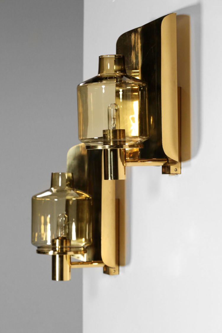 paire d’appliques hans agne Jakobsson V222 suedoise scandinave années dorée 60 vintage design laiton verre