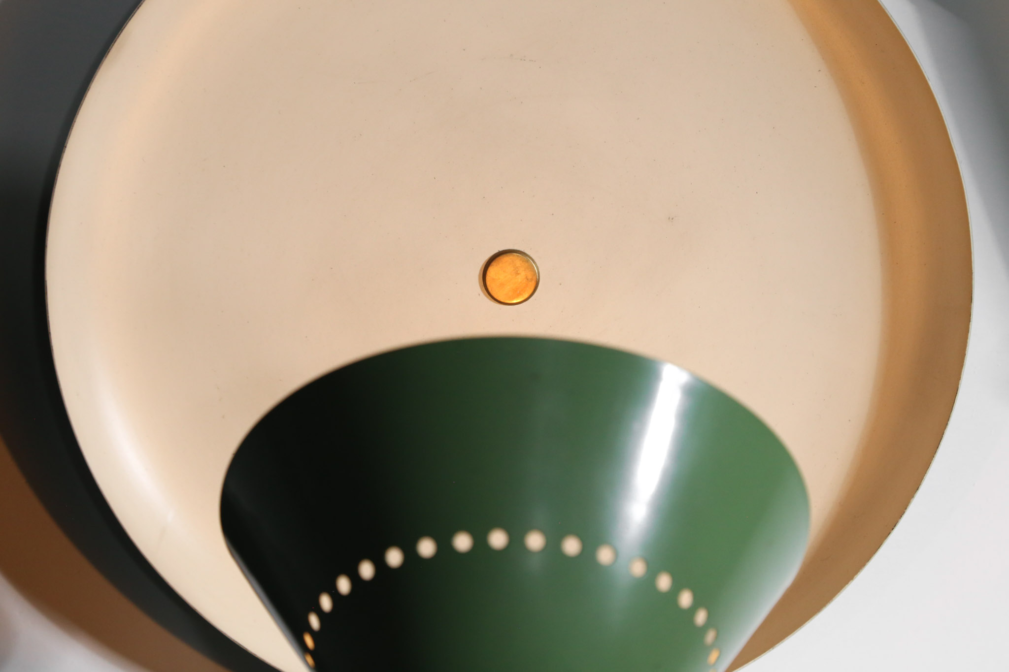 Rare grande paire d’appliques italiennes model B4917 des années 50 par stilnovo. Structure en laiton et acier laqué banc et vert. Diffuseur orientable. Paire d’appliques très décorative avec éclairage indirecte.