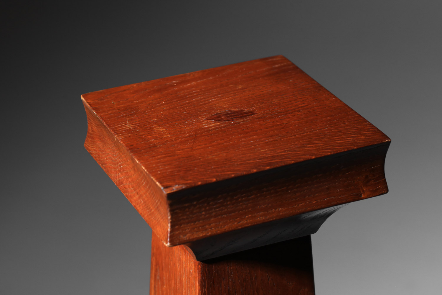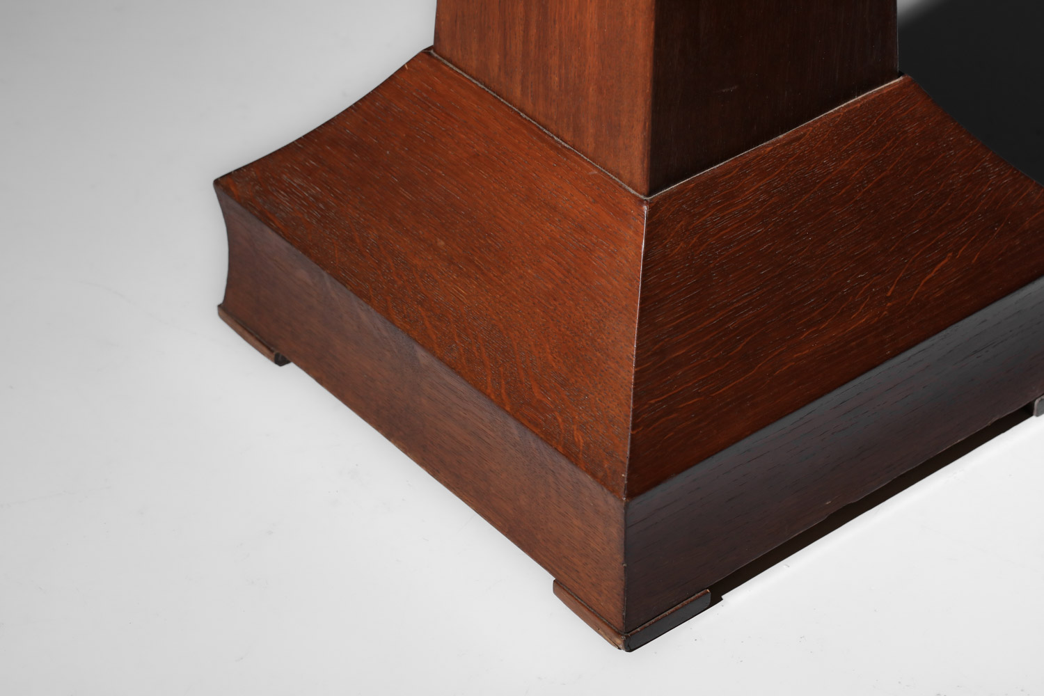 Paire de colonnes Art déco des années 1930 en chêne massif teinté. Bon état vintage, présentant quelques rayures et imperfections mineures du bois: petits manques (voir photos).