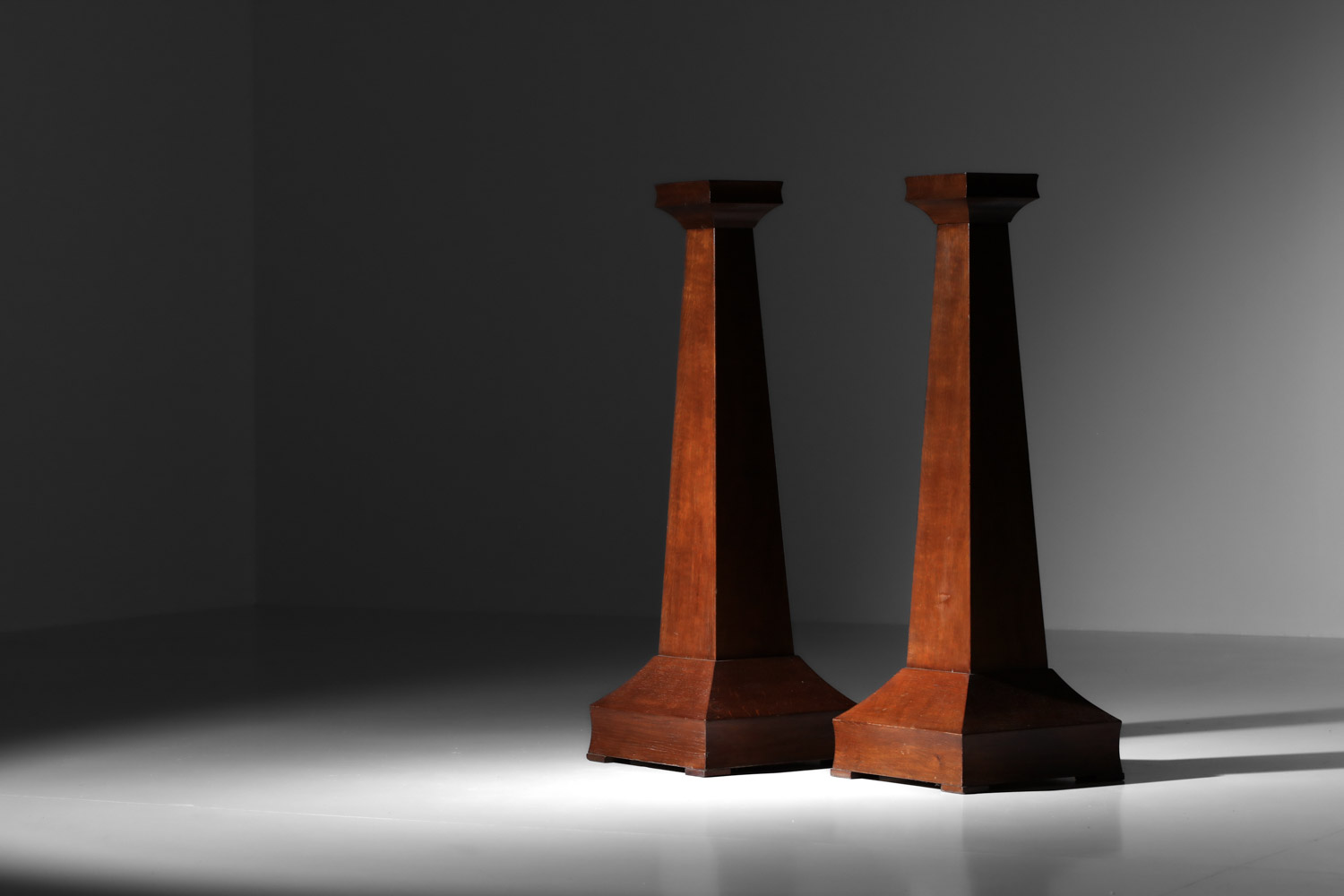paire de colonnes en chêne teinté art déco des années 30 design vintage français bois massif