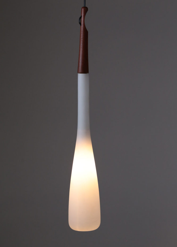 Paire de suspensions danoises en teck et opaline années 50 vintage Phillips finn juhl Danish scandinave