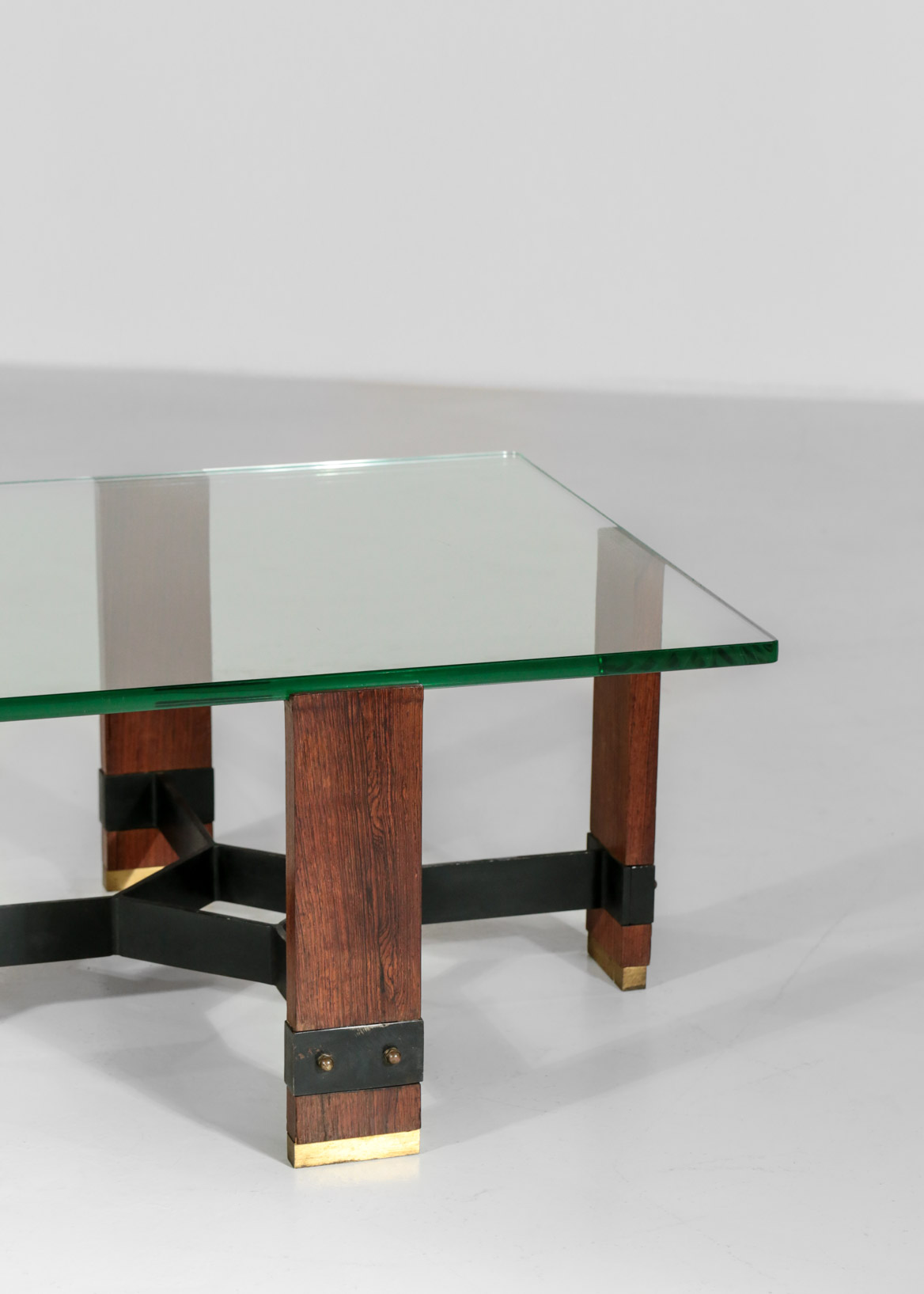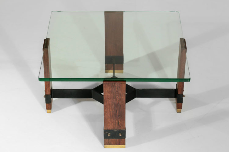 table basse années 60 carrée bois verre laiton acier laque noir travail moderniste design années 50 60