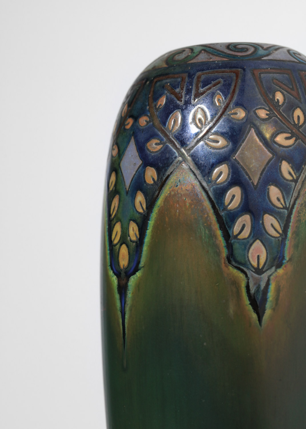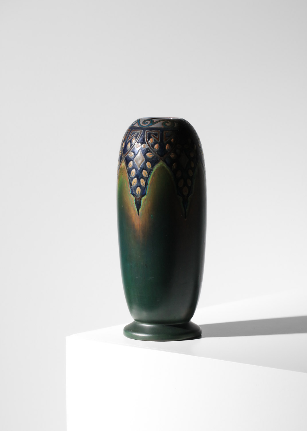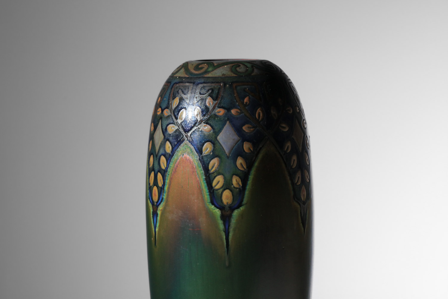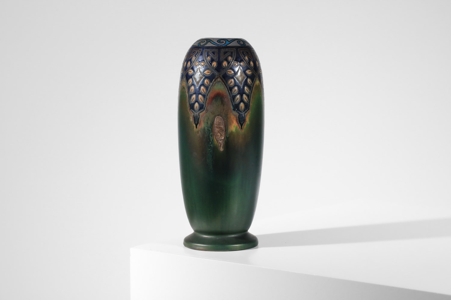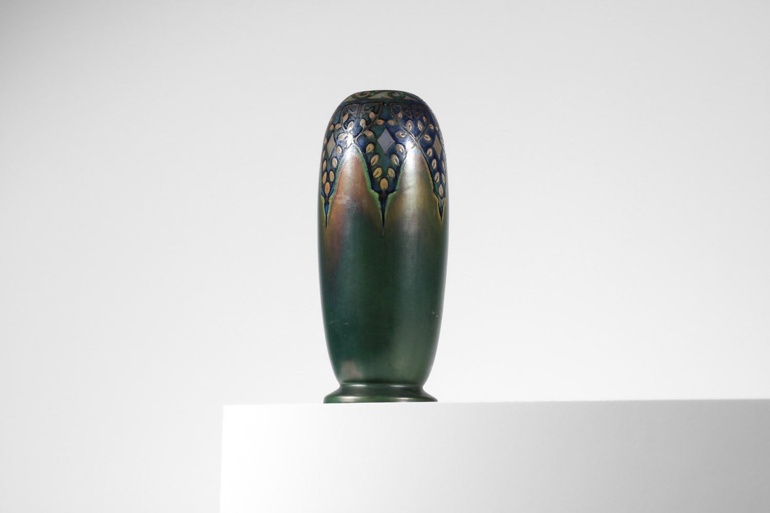 Vase Art Nouveau de la manufacture de Montières, finition cloisonnée irisée – J452